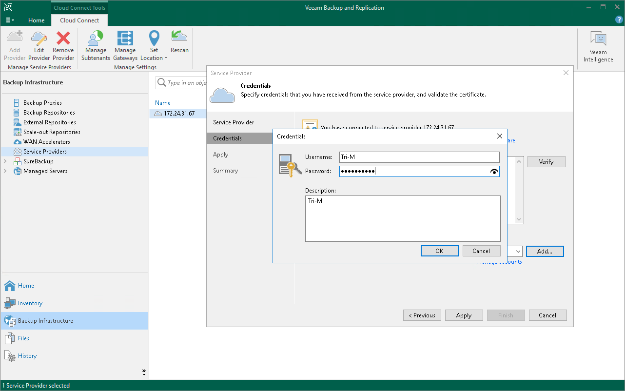 To reconnect to the SP (performed by the tenant on the tenant Veeam backup server):