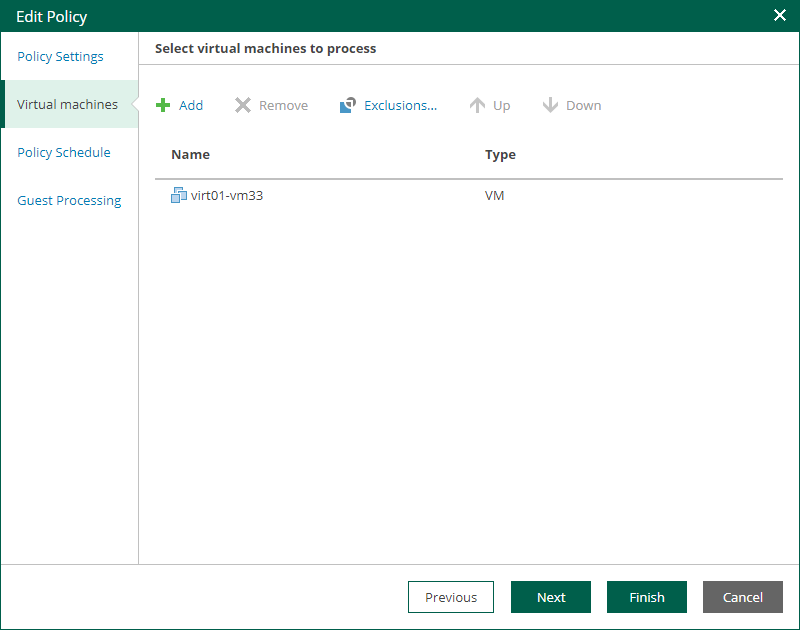 If you select a VM container and later add a new VM to the container, Veeam Backup & Replication will update policy settings automatically to include the VM.