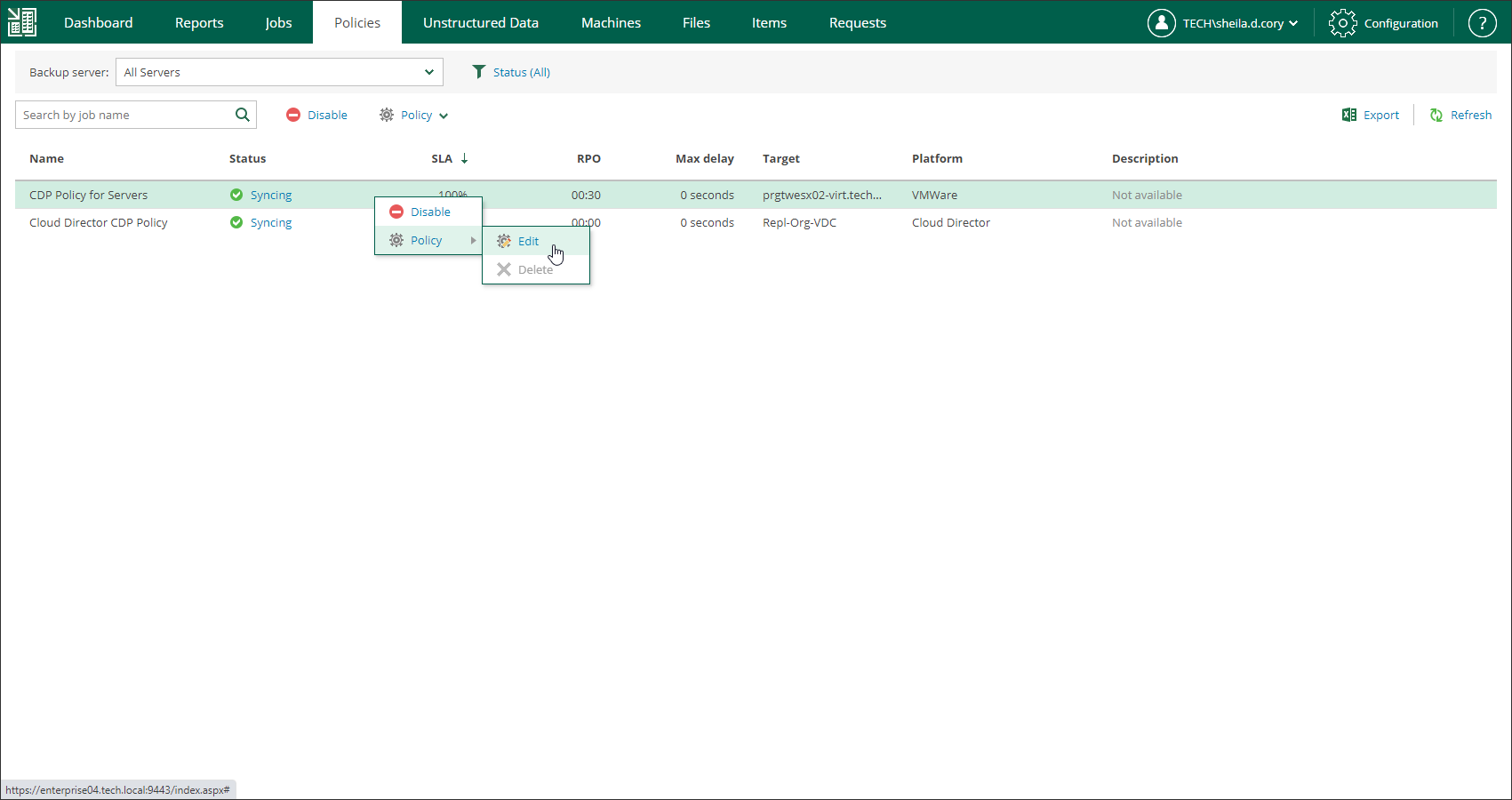 This is an archive version of the document. To get the most up-to-date information, see the current version. Step 1. Launch Edit Policy Wizard To launch the Edit Policy wizard:Open the Policies tab and select the necessary policy from the list.On the toolbar, click Policy and select Edit.