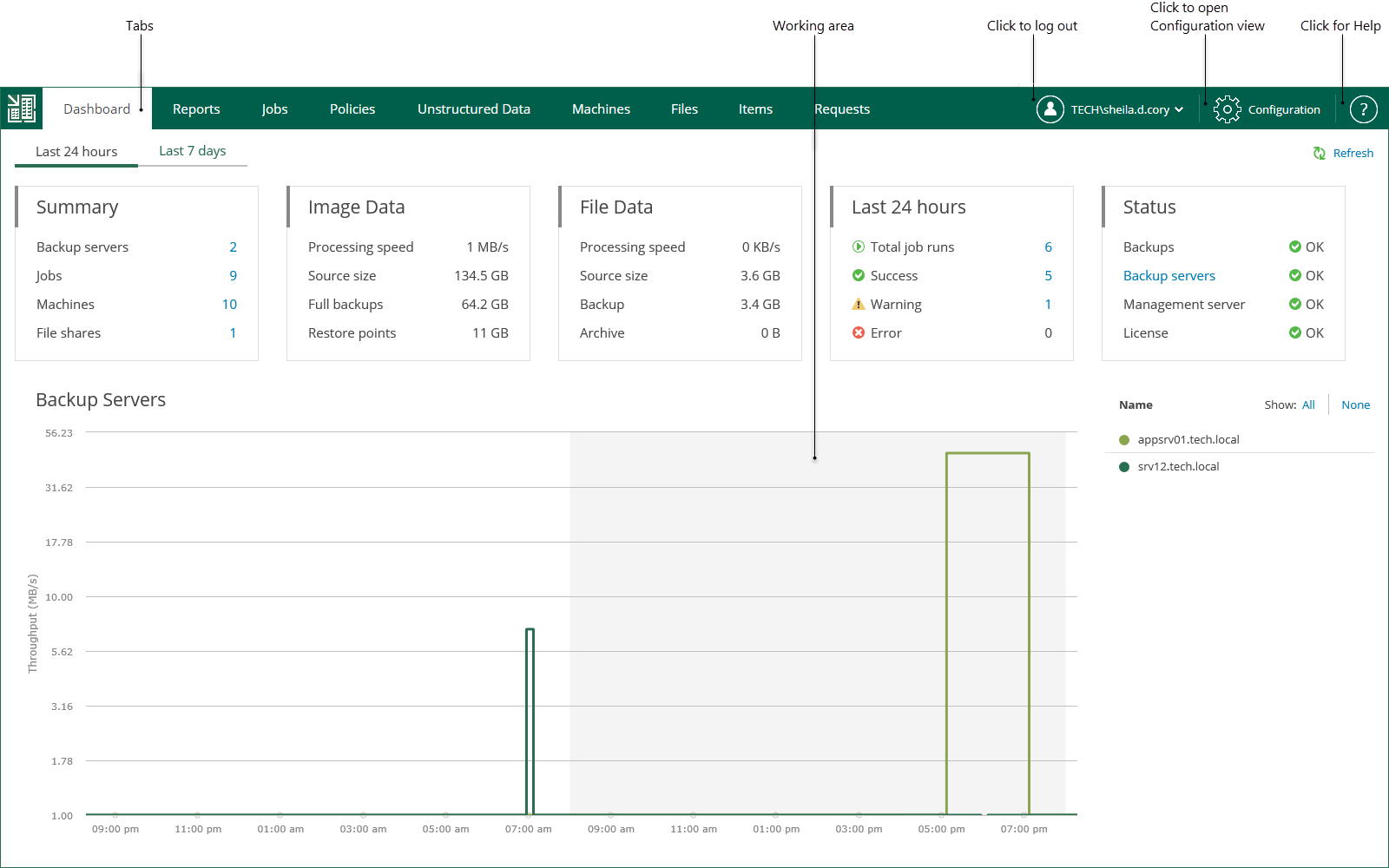 The user interface of Veeam Backup Enterprise Manager consists of two views.