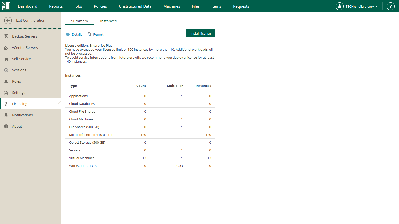 If you have a Perpetual Socket license installed, you can install an instance license over it. In this case, the licenses will be merged. For more information on licenses available for merging, see the Merging Licenses section of the Veeam Backup & Replication User Guide. After the merge, you can remove an unnecessary part of the merged license. For details, see Removing License.