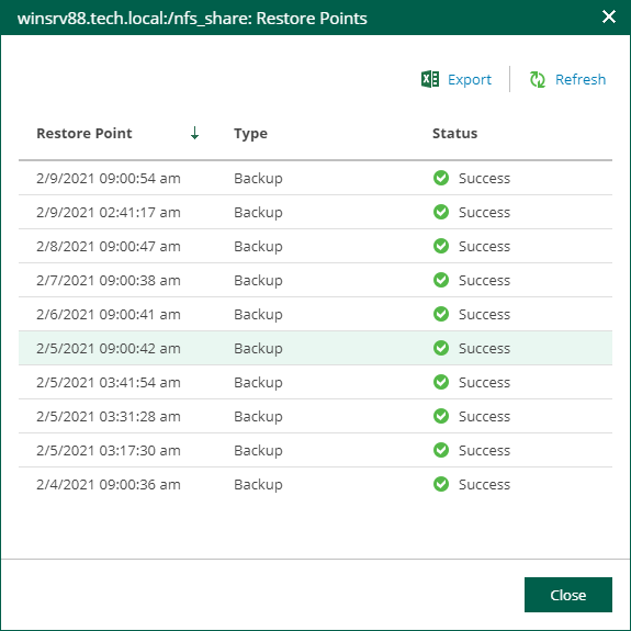 - To see detailed information about restore points, click a link in the Restore Points column.