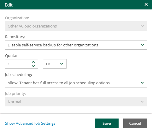 - Repository — Disable self-service backup for other organizations