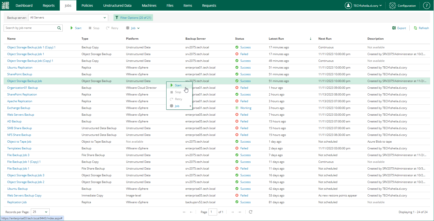 Users with the Portal Administrator role can control backup and replication jobs without the need to access the Veeam Backup & Replication console on the backup server.