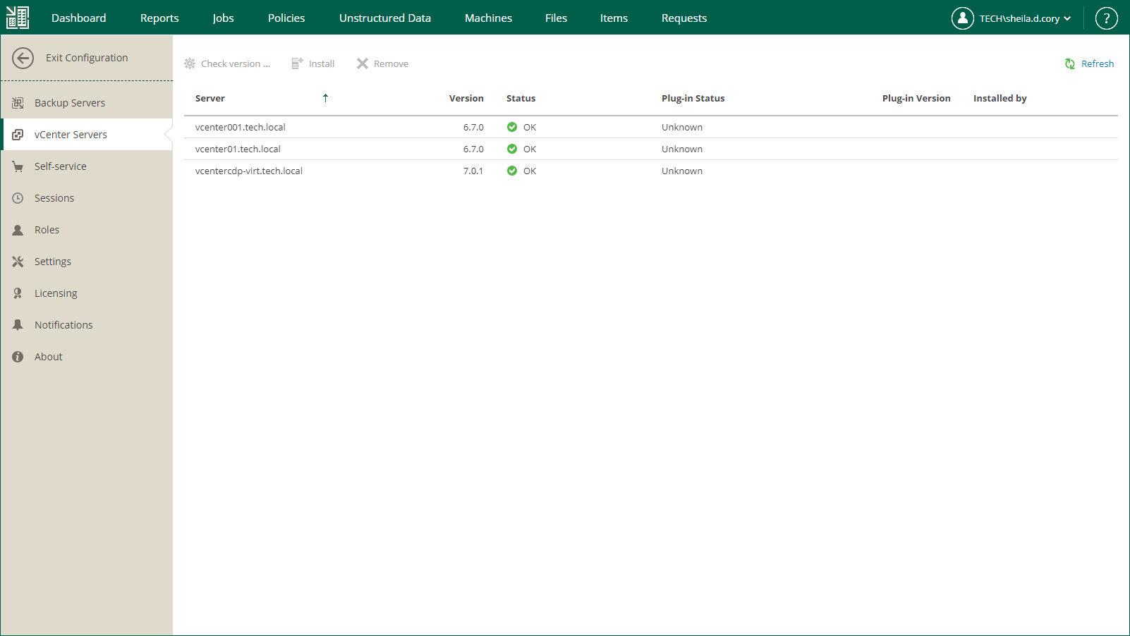 - Remove — use this command to uninstall Veeam Plug-in for VMware vSphere Client from selected server.
