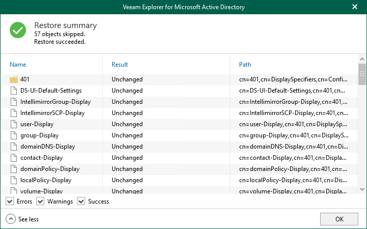 At the Restore summary step, click See more to expand the window and review details of the restore operation.