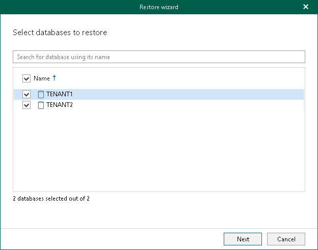 You can only select tenant databases in this window, for the following reasons: - Restore of the system database to another server is not supported.