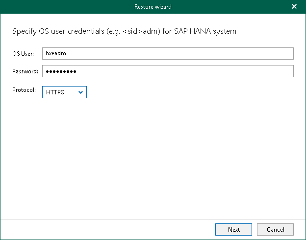 - In the Protocol drop-down list, select the protocol that Veeam Explorer for SAP HANA will use to connect to SAP Web Services, which are then used to control the target SAP HANA system.