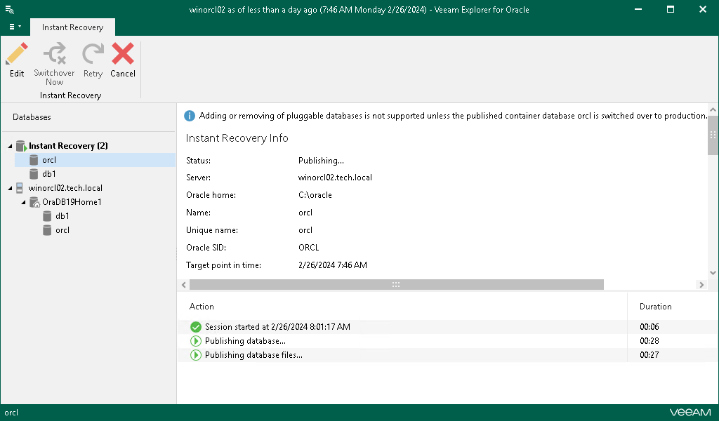 Depending on the option you choose in the Instant Recovery wizard, switchover starts in one of the following ways: