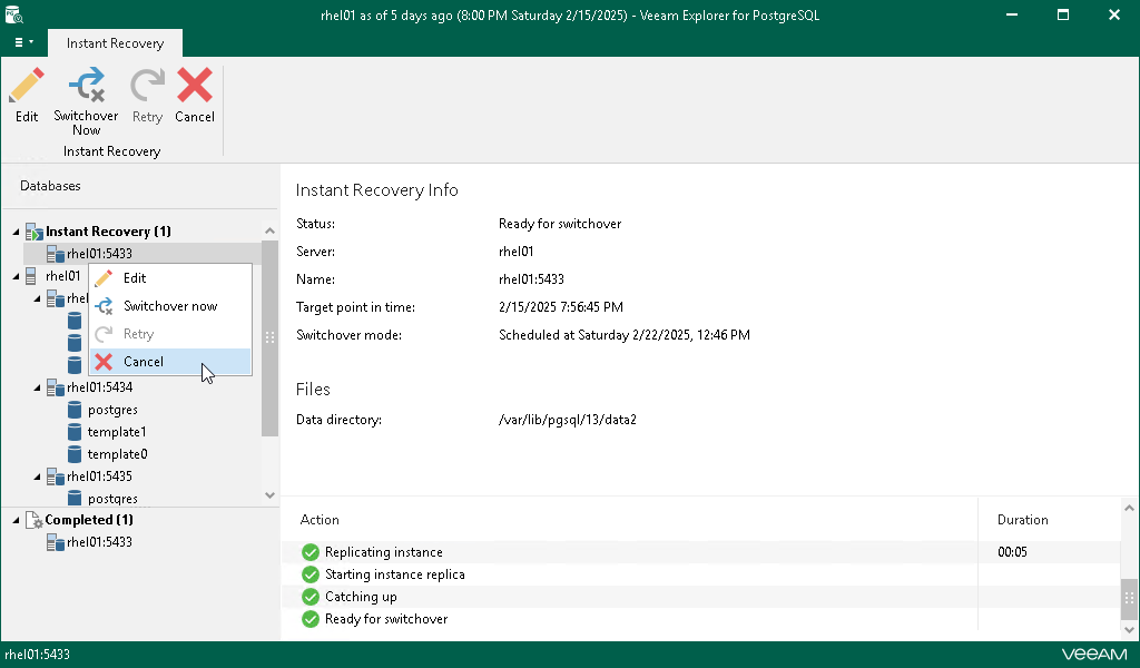 Canceling Instant Recovery in Veeam Explorer for PostgreSQL