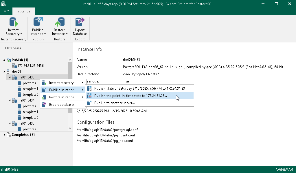 - On the Instance tab, select Publish Instance > Publish point-in-time state to <target_server>.