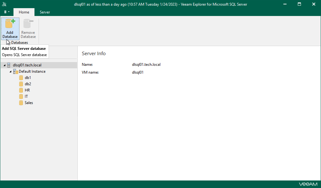 - On the Home tab, click Add Database.