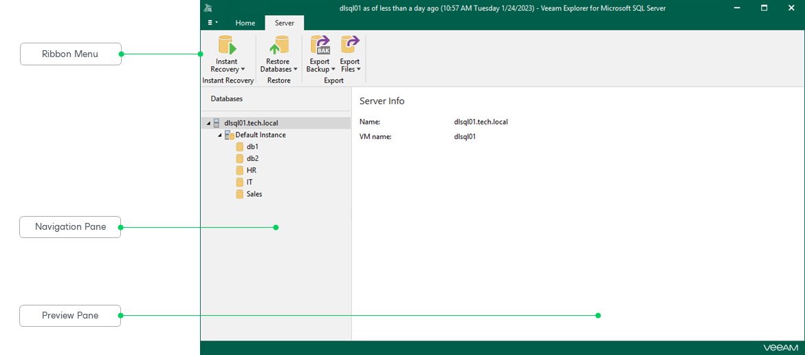 Veeam Explorer for Microsoft SQL Server provides you with a convenient user interface that allows you to perform the required operations in a user-friendly manner.