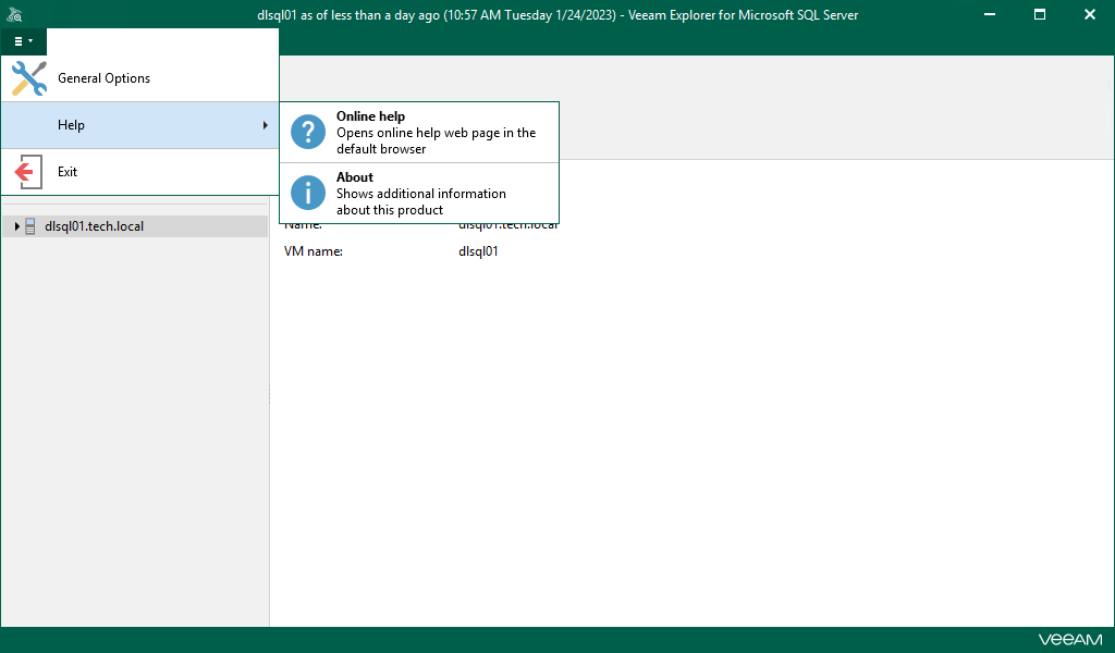 - Exit. Closes the Veeam Explorer for Microsoft SQL Server window.
