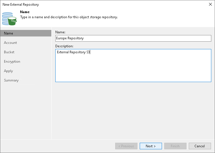 This is an archive version of the document. To get the most up-to-date information, see the current version. Step 2. Specify External Repository Name At the Name step of the wizard, specify a name and description for the external repository.