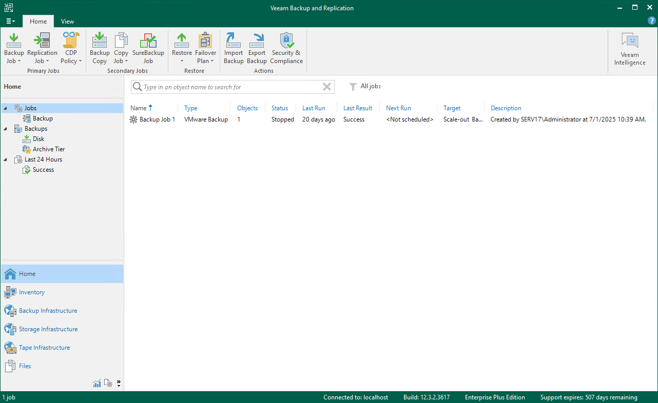 - The backup server which this Veeam Backup & Replication console is connected to. By default, the console connects to the backup server installed locally — localhost.