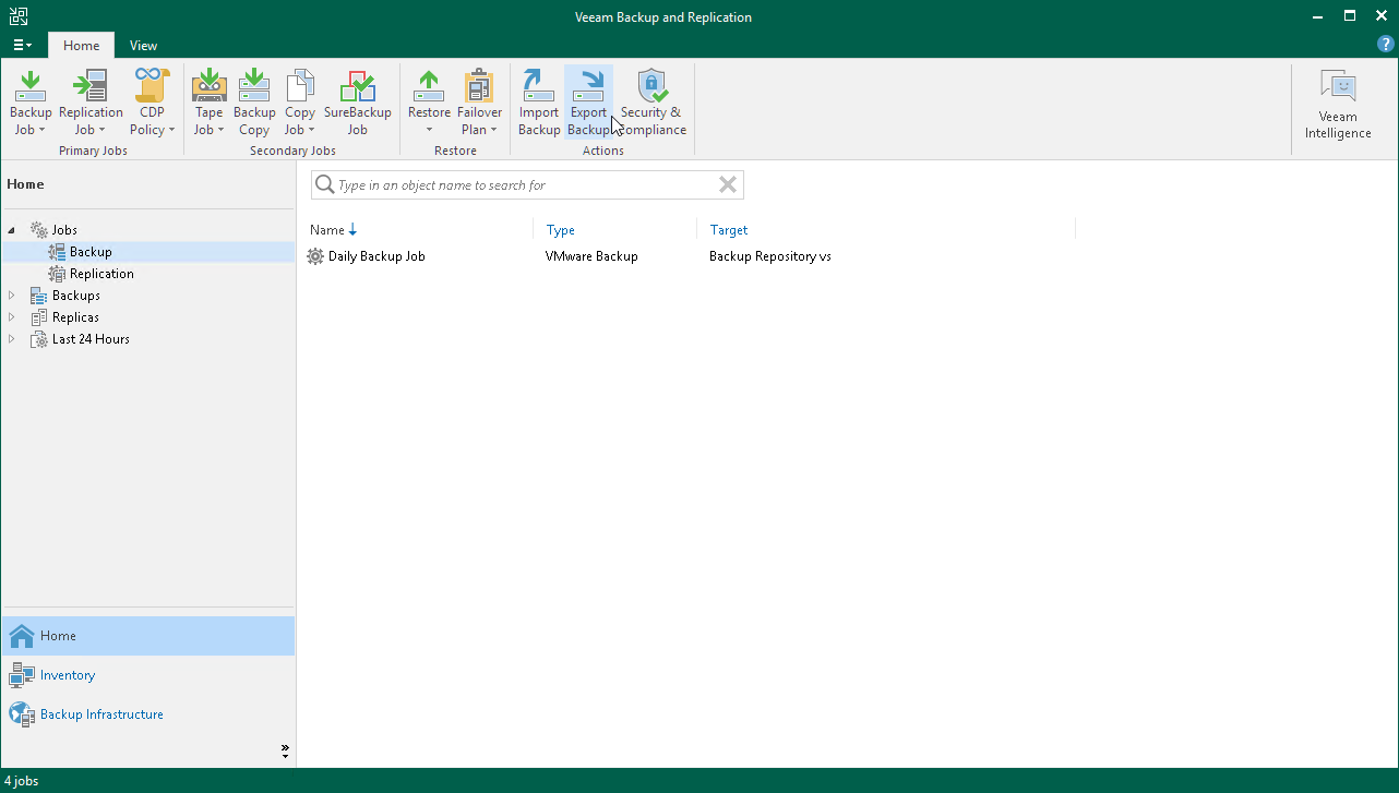 This is an archive version of the document. To get the most up-to-date information, see the current version. Step 1. Launch Export Backup Wizard To launch the Export Backup wizard, do either of the following:On the Home tab, click Export Backup.In the Home view under the Backups > Disks node, select a VM you want to transform into a full backup file and click Export backup.
