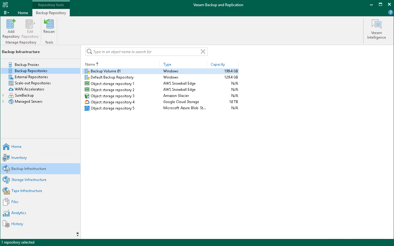 The navigation pane, located on the left of the window, provides centralized navigation and lets you easily access Veeam Backup & Replication items organized in views.