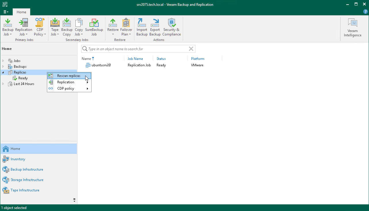 - In the inventory pane, right-click the Replicas node and select Rescan Replicas.