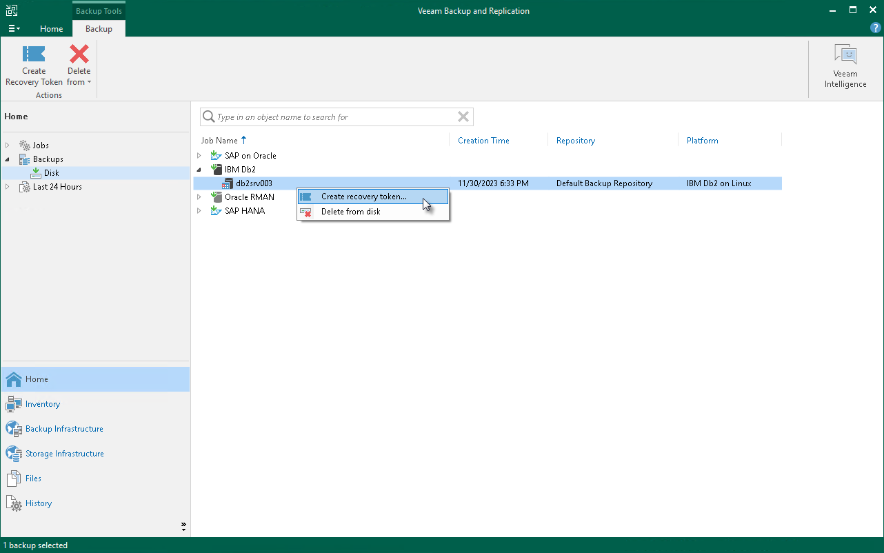 - You cannot create a recovery token for a whole backup copy job, but you can create a recovery token for individual objects included in a backup copy job.