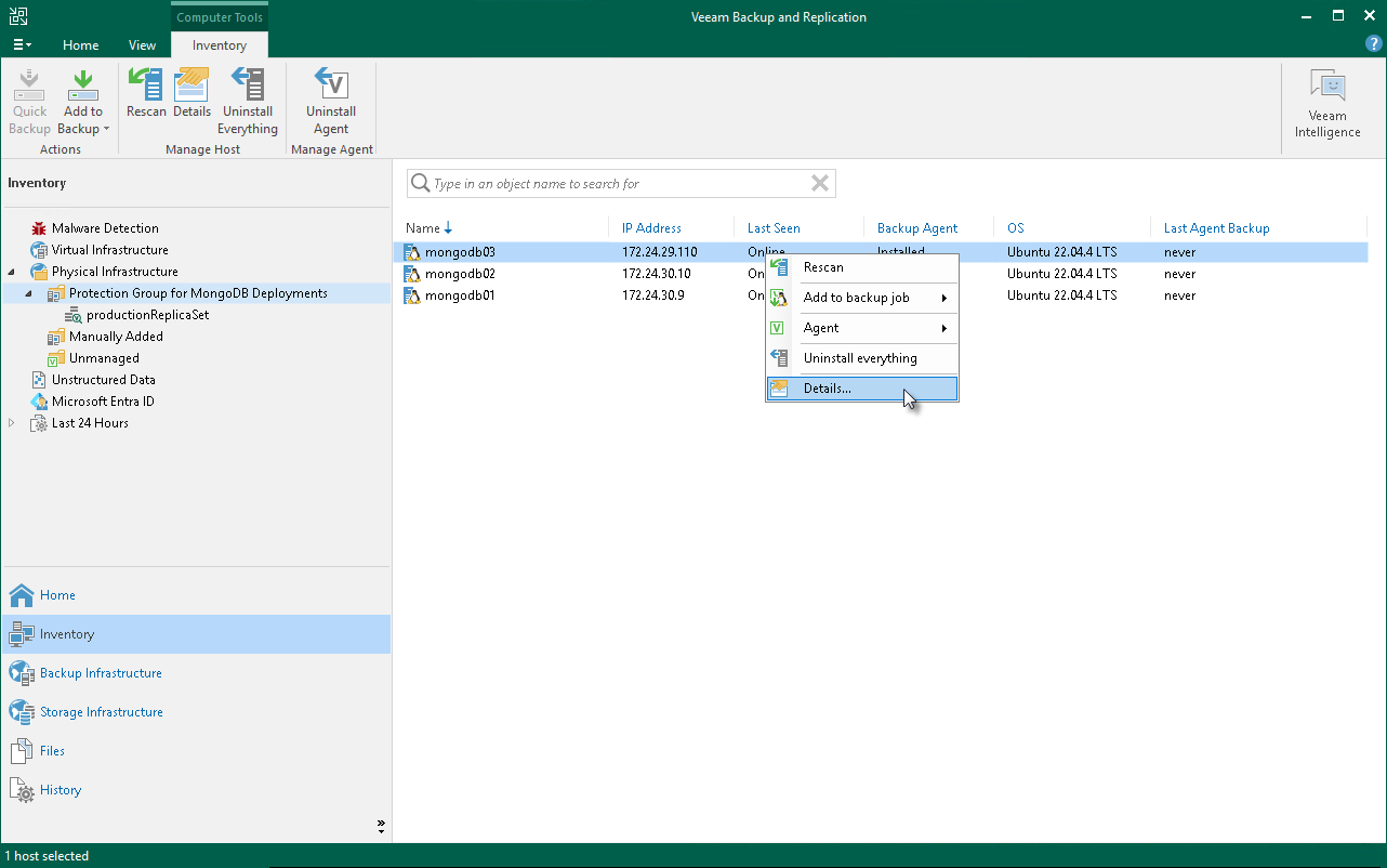 3. In the working area, select the computer and click Details on the ribbon or right-click the computer and select Details.