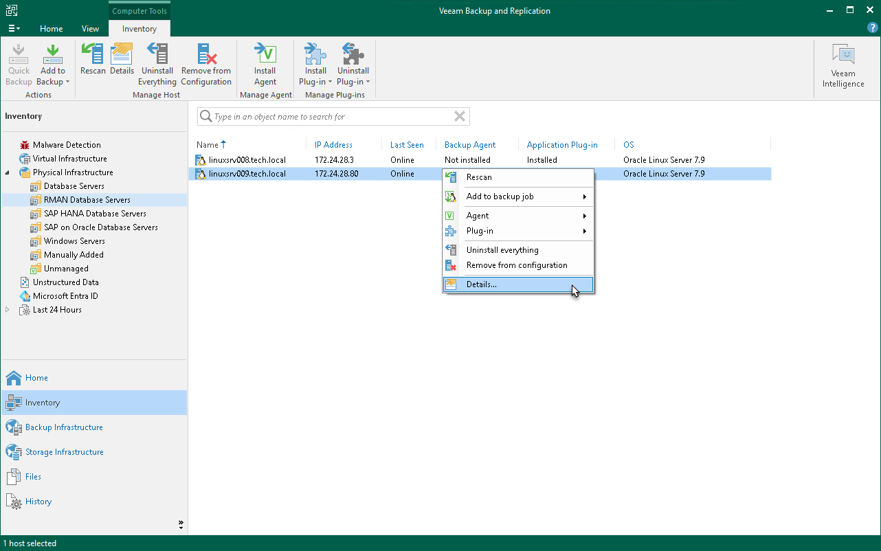 - In the working area, select the computer and click Details on the ribbon or right-click the computer and select Details.