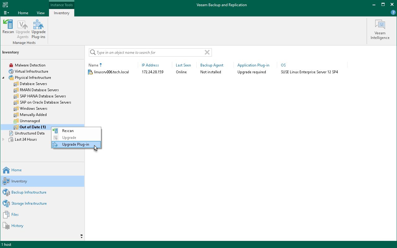 - Veeam Plug-in on the protected computer must be managed by Veeam Backup & Replication. Upgrade of standalone Veeam Plug-ins must be performed from the Veeam Plug-in side. To learn more, see Upgrading from Veeam Plug-in Side.