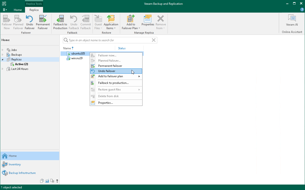 For more information on undoing failover, see the Undo Failover section in the Veeam Backup & Replication User Guide.