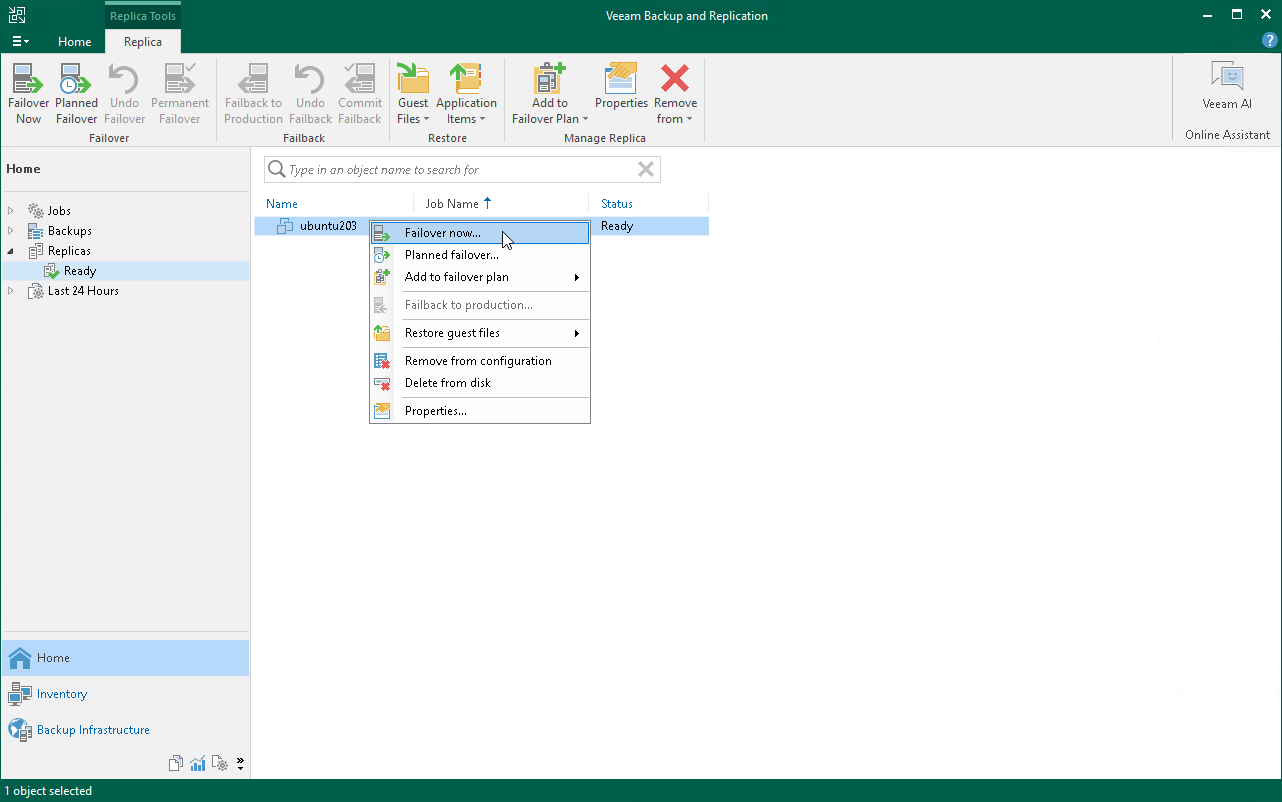 For more information on failover, see the Replica Failover section in the Veeam Backup & Replication User Guide.