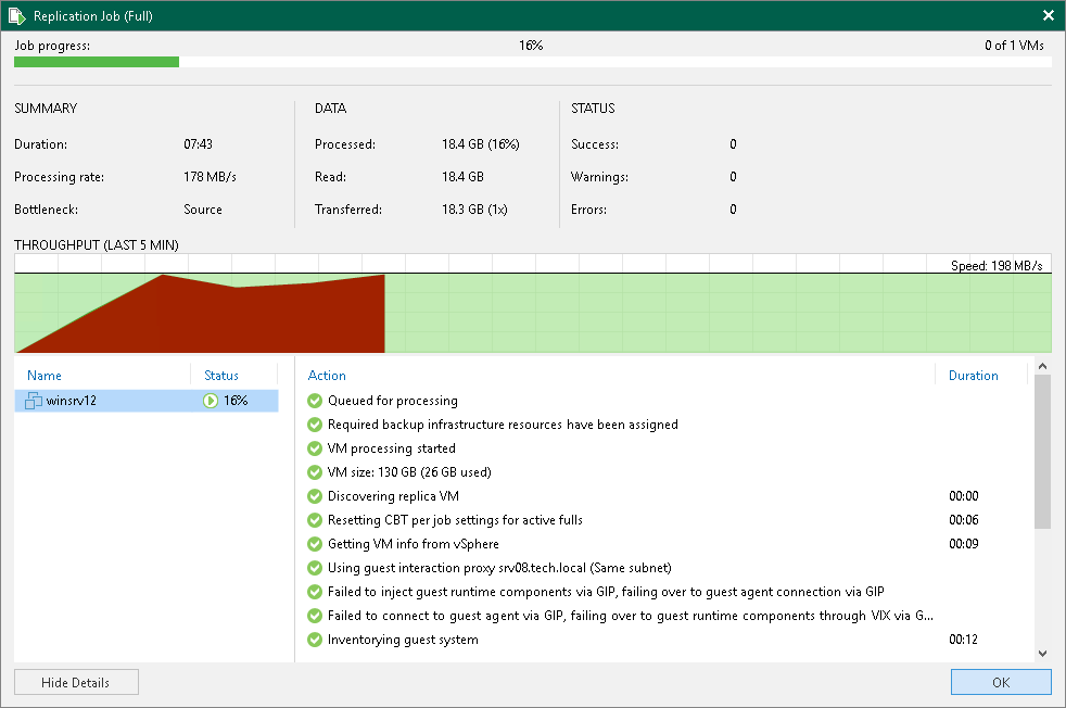 Note that the job must complete with the Success or Warning status. If the job completes with the Failed status, Veeam Backup & Replication does not create a replica and is not able to perform failover and failback operations.
