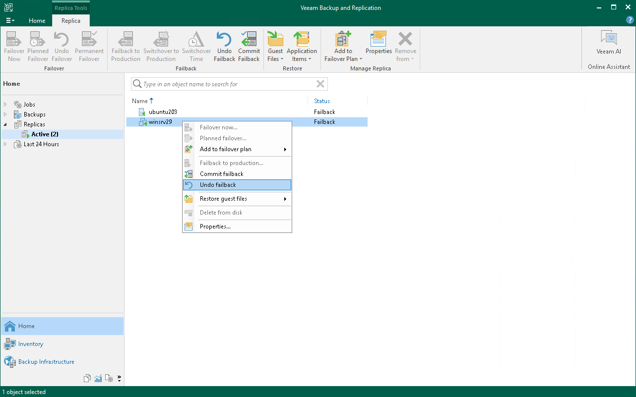 For more information on undoing failback, see the Undo Failback section in the Veeam Backup & Replication User Guide.