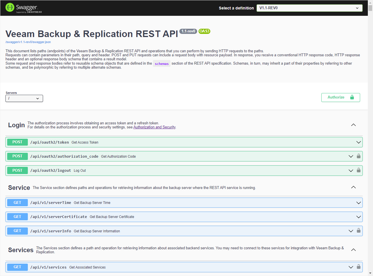 The source document is JSON file swagger.json . You can find the file in the installation folder of Veeam Backup & Replication. The default path is %Program Files%\Veeam\Backup and Replication\Backup\RestApiService\specs\latest.