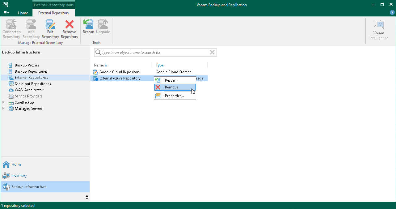 You can remove an external repository from the backup infrastructure.
