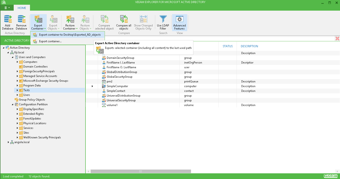 You can use the Export Object to <target_folder> or Export Container to <target_folder> command from the ribbon or shortcut menu to quickly export selected object(s) or container(s) to the default location.