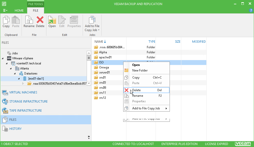 You can create, rename and delete folders in the Files view of Veeam Backup Free Edition.