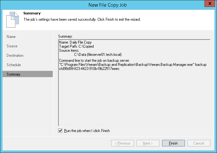 At the Summary step of the wizard, complete the procedure of file copy job configuration.