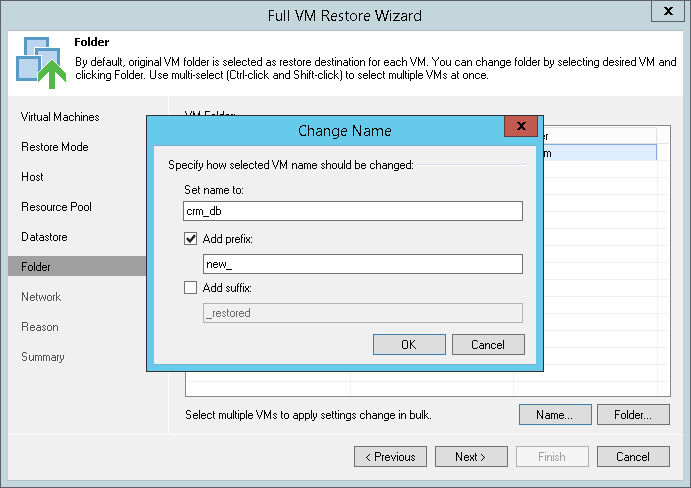 The Folder step of the wizard is available if you have chosen to change the location and settings for the restored VM.