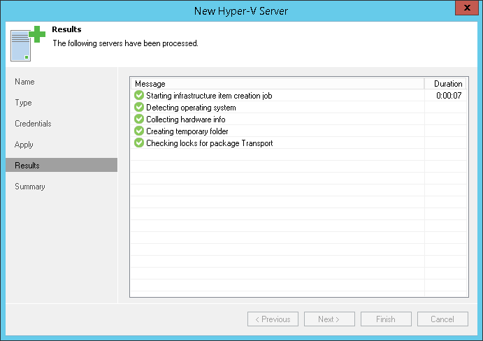 At the Results step of the wizard, complete the procedure of Microsoft Hyper-V server adding.