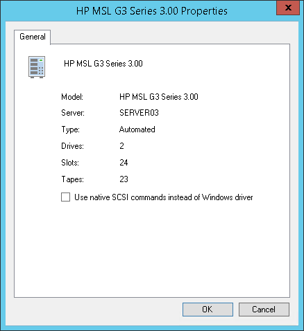 Select the Use native SCSI commands instead of Windows driver check box if your library is an unknown media changer. For more information about unknown media changers, see Supported Devices.