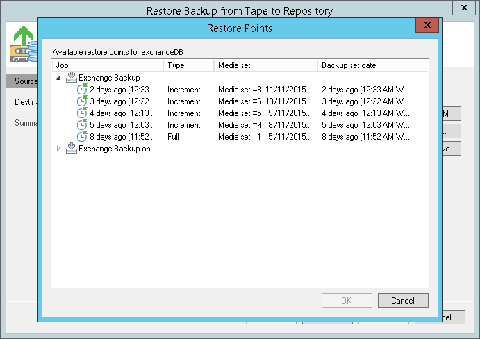If you choose a full backup point in the list, Veeam Backup & Replication will restore only this full backup. If you choose an increment, Veeam Backup & Replication will restore a chain consisting of a full backup and forward increments, necessary to restore VMs to the required point-in-time. |