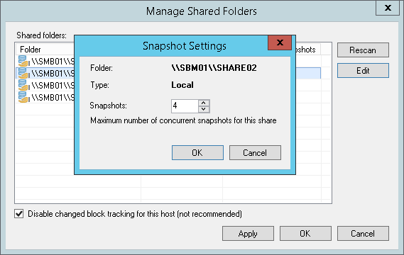 You can specify the maximum number of concurrent Hyper-V snapshots that must exist for a shared folder hosted by a Microsoft SMB3 server.