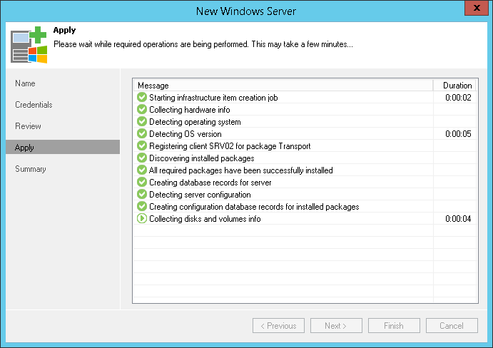 At the Apply step of the wizard, complete the procedure of Microsoft Windows server adding.