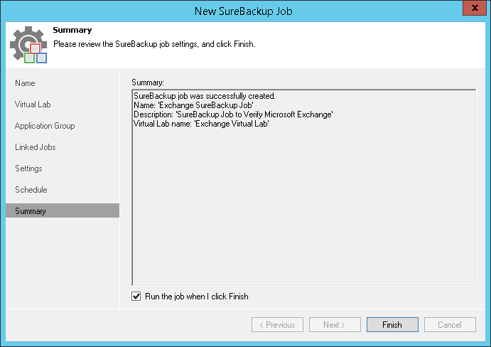 At the Summary step of the wizard, complete the procedure of SureBackup job configuration.