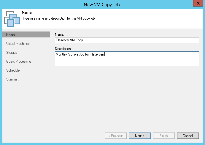- In the Name field, enter a name for the VM copy job.