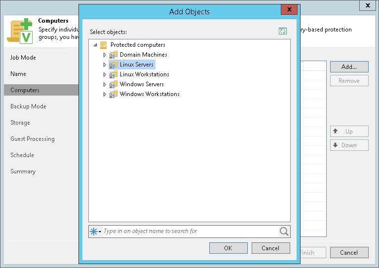 To add protection groups and/or individual computers to the Veeam Agent backup job: