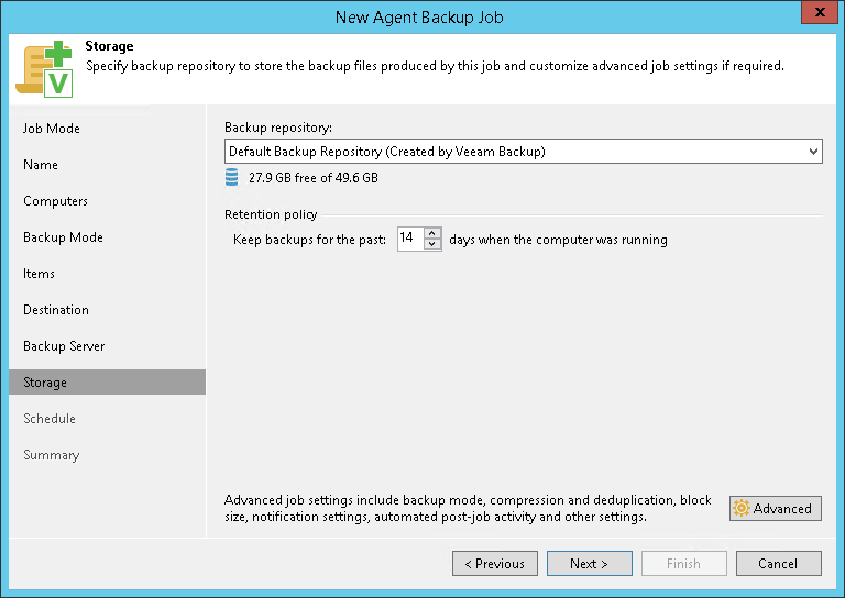 - Click Advanced to specify advanced settings for the backup job. To learn more, see Specify Advanced Backup Settings.