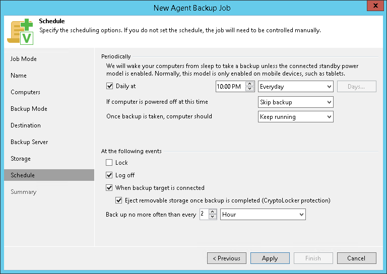 - Select the Lock check box if you want to start the backup job when the user locks the Veeam Agent computer.