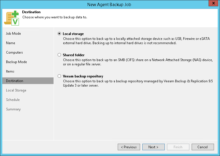 The Destination step of the wizard is available if you have selected the Managed by agent option at the Job Mode step of the wizard.