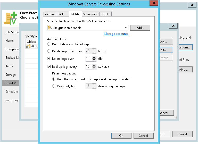 If you back up an Oracle database, you can specify how Veeam Agent for Microsoft Windows must process archived logs: