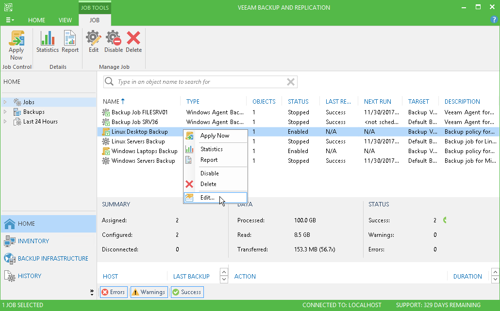 Mind the following: - You cannot change the type of protected computers added to the job and the job mode (that is, change a Veeam Agent backup job to a backup policy and vice versa).